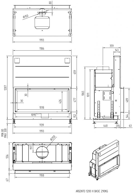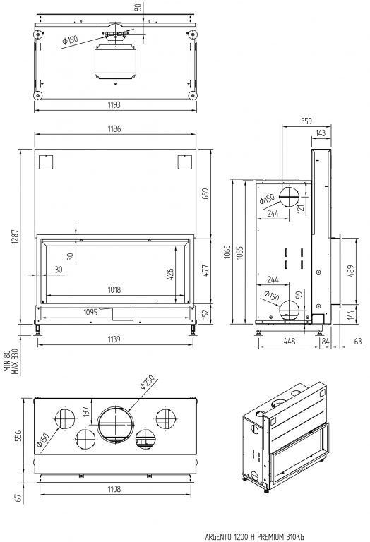 Options | Caisson de convection Intérieur fonte Porte vitrée Argento + Cadres acier |