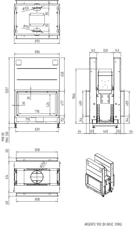 Options | Caisson de convection Intérieur fonte Porte vitrée Argento + Cadres acier |