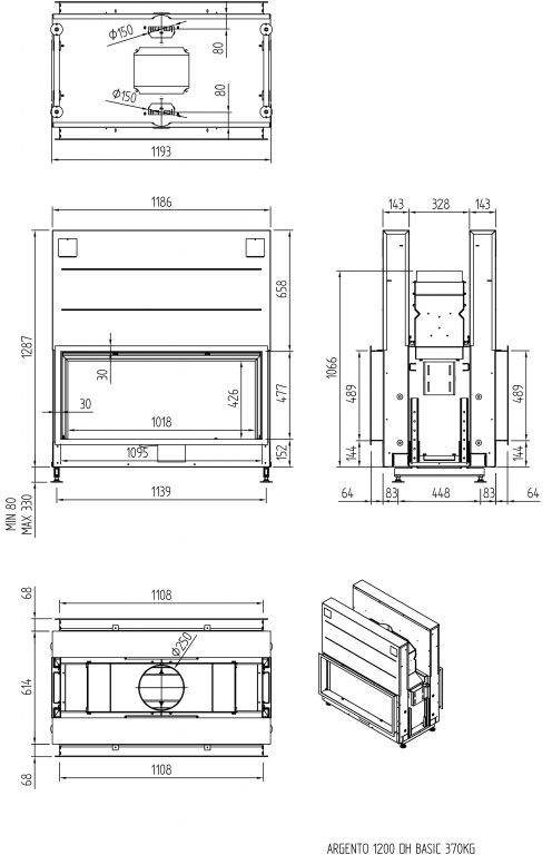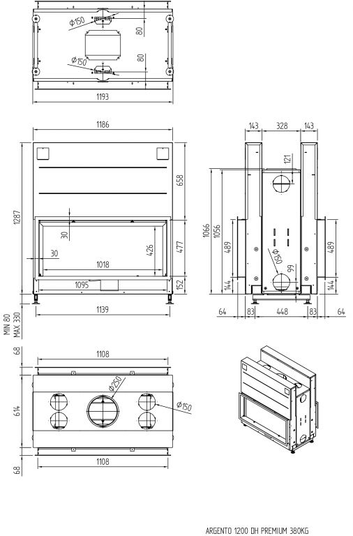 Options | Caisson de convection Intérieur fonte Porte vitrée Argento + Cadres acier |