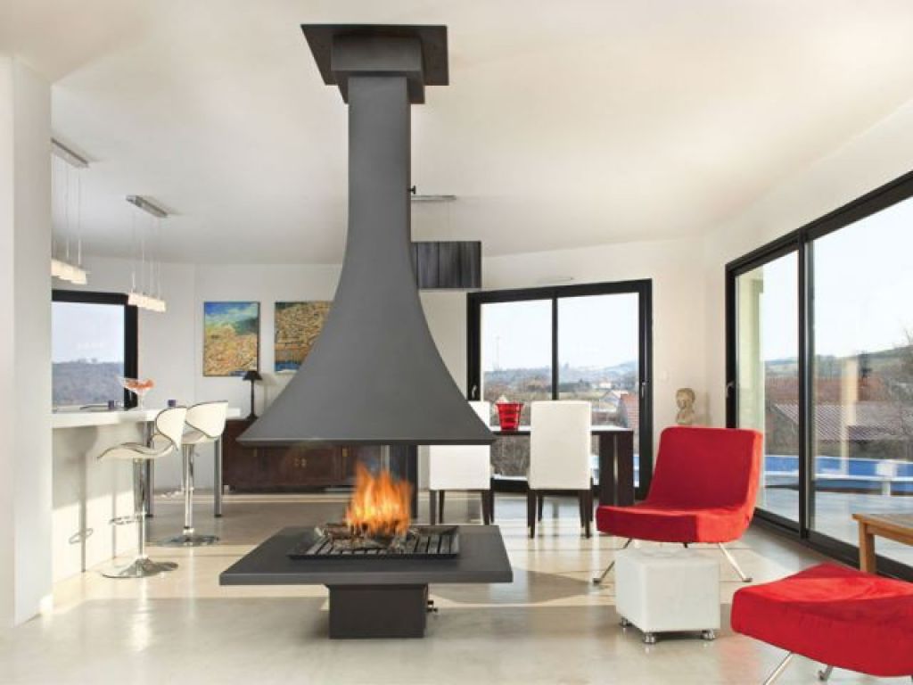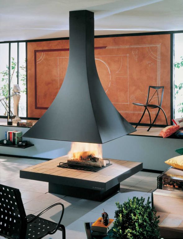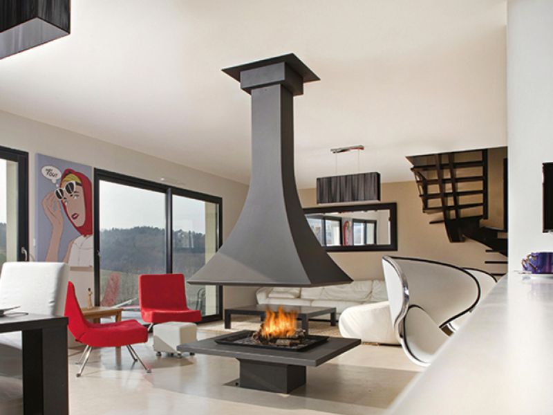 Cheminée centrale haut de gamme et design fabriquée en France dans les ateliers JC Bordelet.