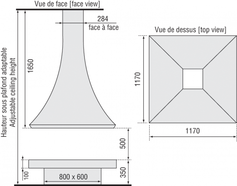 Options | Hotte centrale peinte 117 x 117 cm Hotte centrale peinte 100 x 100 cm Hotte centrale laquée unie 117 x 117 cm double Socle central 117 x 117 cm - Plateau briqueté ou métal - Bac à cendres sous la grille Socle central 110 x 110 cm tout métal - Tiroir à cendres dans le pied Rehausse de socle, (20 cm maximum) Socle vide, (sans briques), finition à réaliser par vos soins Rallonge de conduit non laqué , (au-delà de 2,5 M et pour 1 M supplémentaire) Rallonge de conduit laqué (au-delà de 2,5 M et pour 1 M supplémentaire) Bandeau de socle laqué uni Platine cache plafond Fixation pour cheminée centrale Caisse bois Transport cheminée jusqu'à 4 M de hauteur sous plafond Transport cheminée grande hauteur, (plus de 4 M de hauteur sous plafond) |