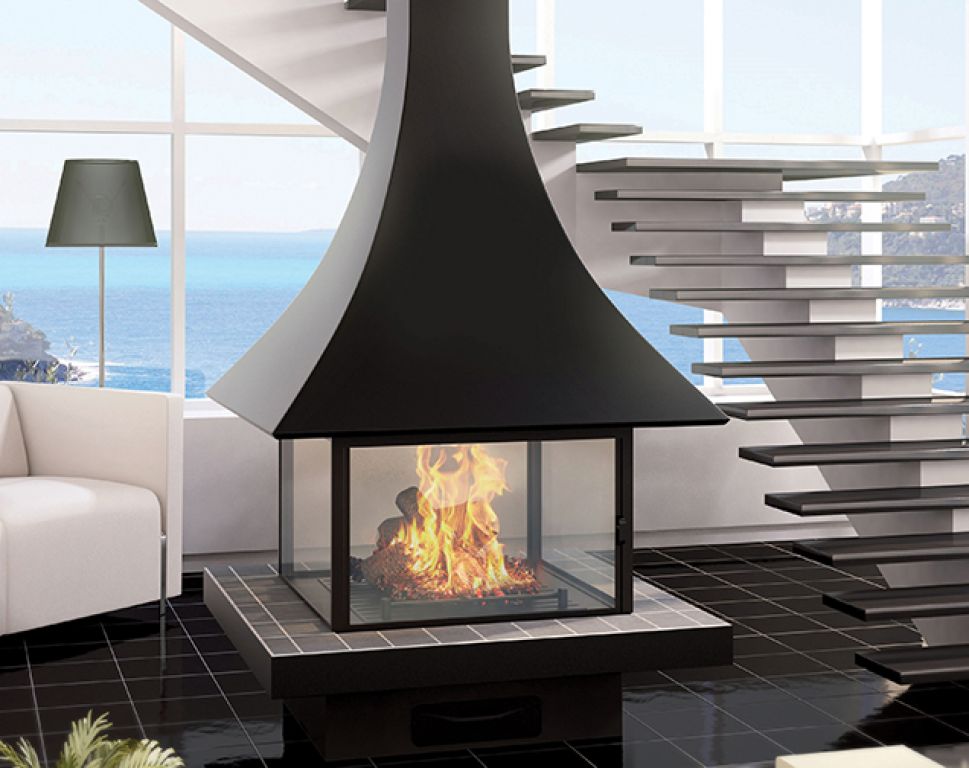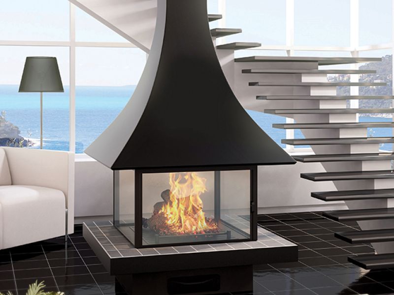 Cette cheminée avec sa très grande vision du feu pourra être mise dans votre salon, en son centre. Cela deviendra un lieu de convivialité et de bien être pour votre famille.
