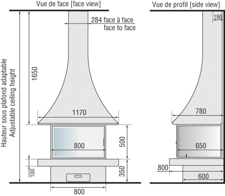 Options | Version murale peinte - Hotte 117 x 80 cm - Socle briqueté ou tout métal, (épaisseur 10 cm) Socle effet ciré (couleurs : blanc cassé, noir ébène, gris, taupe, chocolat) Socle vide, (sans briques), finition à réaliser par vos soins Rehausse de socle, (20 cm maximum) Rallonge de conduit non laqué , (au-delà de 2,5 M et pour 1 M supplémentaire) Bandeau de socle laqué uni Platine cache plafond Outside air Fixation pour cheminée murale Caisse bois Transport cheminée jusqu'à 4 M de hauteur sous plafond Transport cheminée grande hauteur, (plus de 4 M de hauteur sous plafond) |