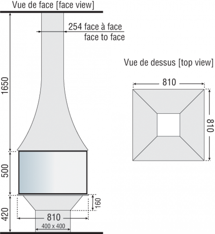 Options | Existe en version sur pied Rallonge de conduit non laqué , (au-delà de 2,5 M et pour 1 M supplémentaire) Platine cache plafond Fixation pour cheminée centrale Caisse bois Transport cheminée jusqu'à 4 M de hauteur sous plafond Transport cheminée grande hauteur, (plus de 4 M de hauteur sous plafond) |