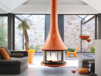 Cette cheminée suspendue haut de gamme est fabriquée en France dans les ateliers JC Bordelet.