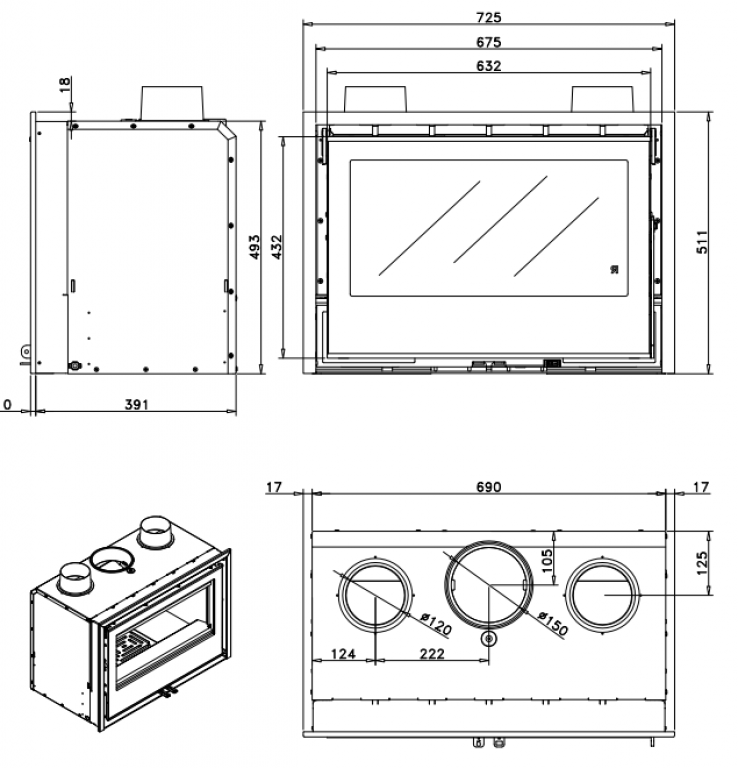 Options | Kit de ventilation, Régulateur de vitesse des turbines Cadre 4 côtés de 4 cm Cadre décoratif de 10 cm Contrôle automatique de la combustion ECOntrol Pied réglable et nivelable |