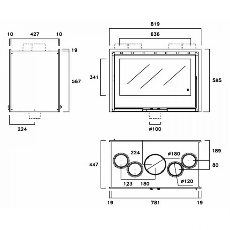 Options | Kit de ventilation, Régulateur de vitesse des turbines Cadre 4 côtés de 4 cm Cadre décoratif de 10 cm Contrôle automatique de la combustion ECOntrol Pied réglable et nivelable |