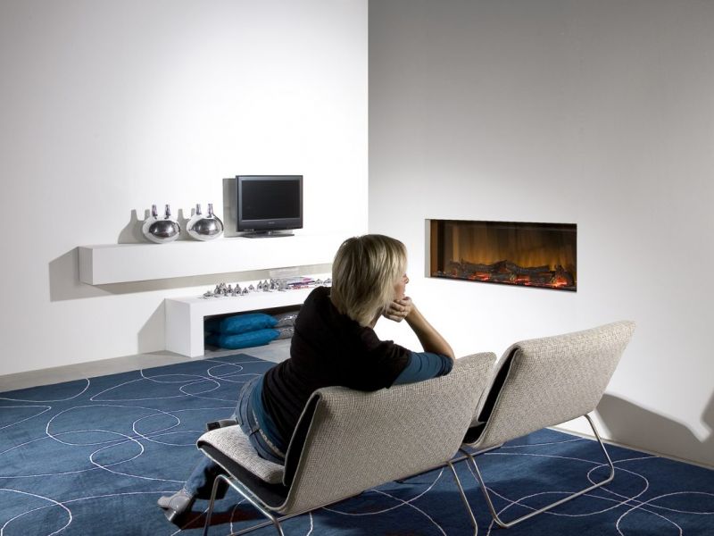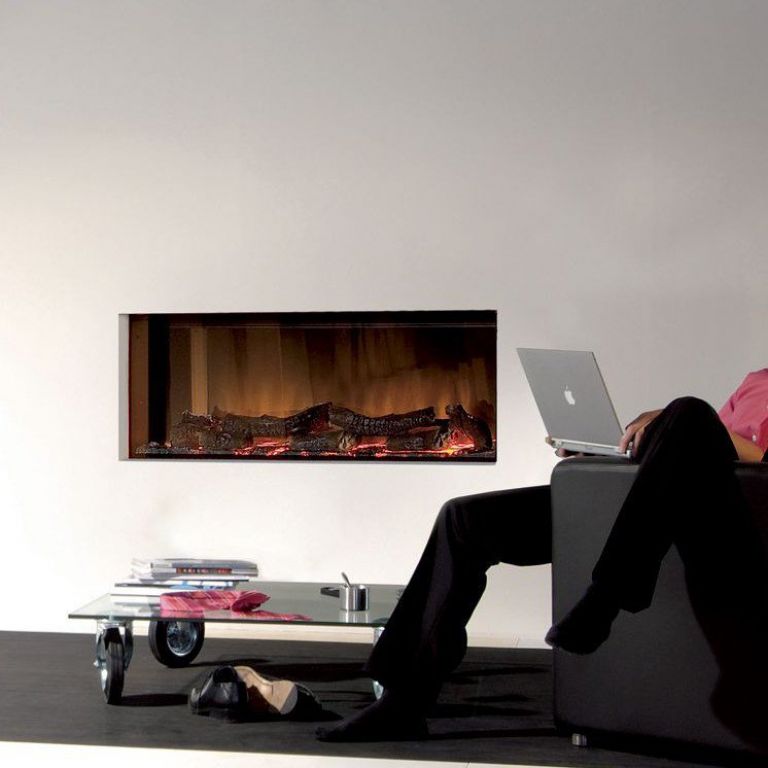 Foyer encastrable « grand écran » sans cadre avec jeu de flammes réaliste. Ce modèle qui ne passe pas inaperçu est livré avec des bûches, pour un look robuste, et dispose d’un éclairage LED spécial. Le jeu de flammes est synonyme d’ambiance et de chaleur.