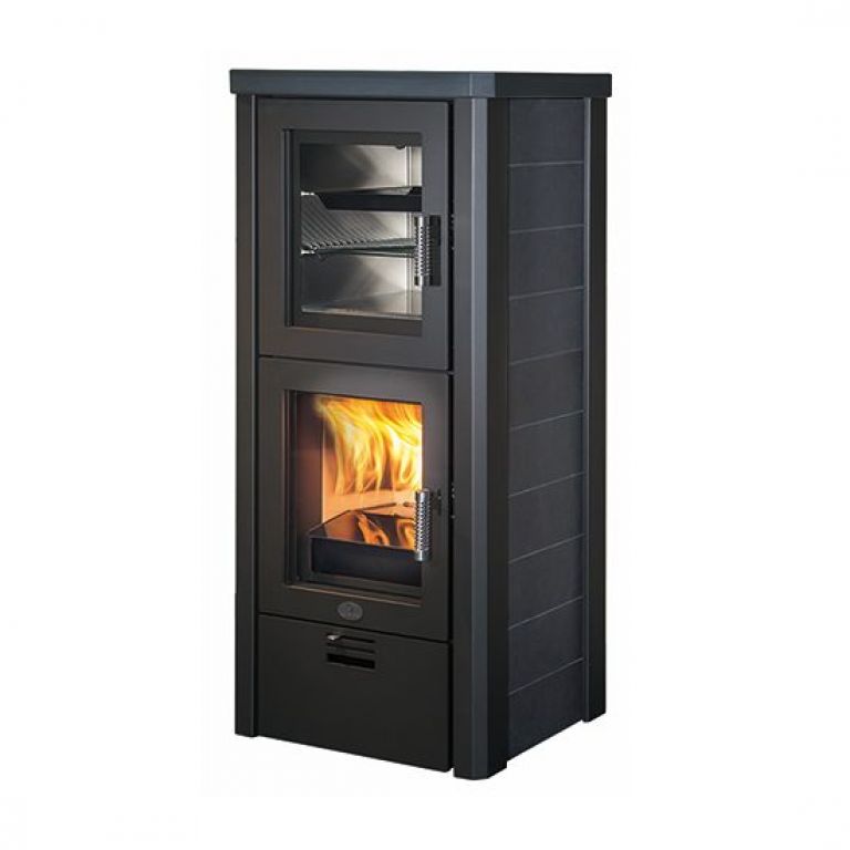 Le poêle BAMBERG BF Max Blank est un poêle doté d’un four de cuisson. Il peut fonctionner au bois et aux granulés grâce au système Pellet-box. Un poêle moderne et performant qui allie confort de chauffage et plaisir de la cuisine au feu de bois. Le poêle mixte BAMBERG BF possède un corps en acier coloris anthracite. Les 2 côtés et le couvercle sont habillés en pierre naturelle.