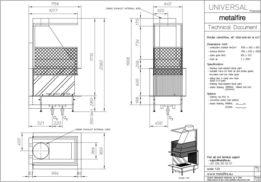 METALFIRE UNIVERSAL BOIS MF 1050-800-60 W 3S EXT