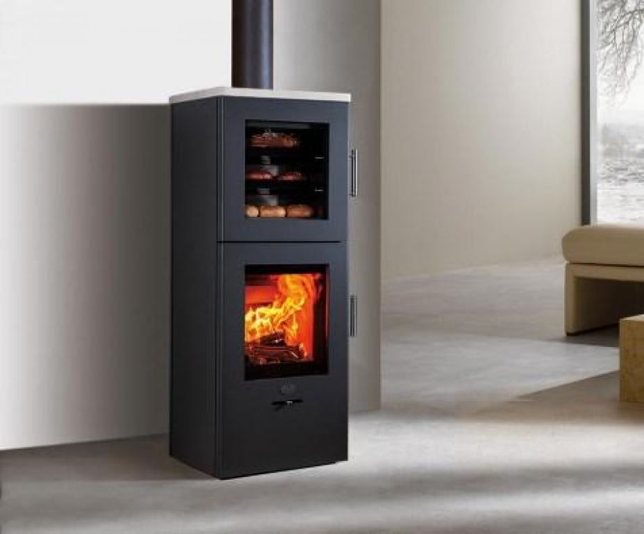 Le poêle NURNBERG BF est doté d’un four de cuisson. Il peut fonctionner au bois et aux granulés grâce au système Pellet-box. Le poêle mixte NURNBERG BF possède un corps en acier coloris anthracite, un couvercle en pierre naturelle Blanc Crème Lisse et une porte en fonte.