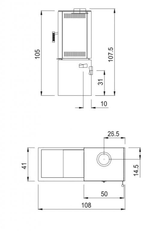 Le Poêle mixte bois et granulés TOULON II fonctionne au bois (bûches de 33cm) ou granulés sans alimentation électrique, grâce au système de cassette à pellets MAX BLANK. Le poêle TOULON II en acier possède un grand espace range-bûches. La version Toulon II STONE possède un habillage en pierre naturel côtés et couvercle. Prise d’air frais horizontale ou verticale.