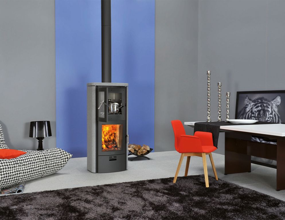 Avec ses dimensions de 137,5 h x 61,5 l x 48,5 p cm et un poids total de 323 kg, l’appareil atteint une domaine de puissance de 3,3 – 6,5 kW en mode combustion à bois et de 7,5 / 11 kW en mode combustion à pellets.