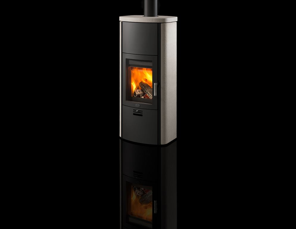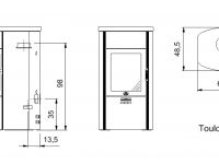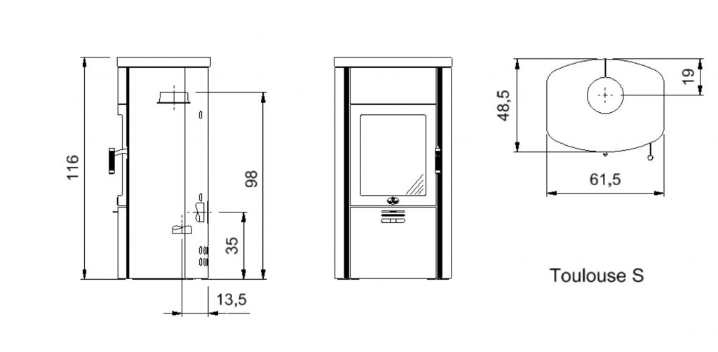Avec ses dimensions de 138 h x 61,5 l x 48,5 p cm et un poids total de 382 kg, l’appareil atteint une domaine de puissance de 3,3 – 6,5 kW en mode combustion à bois et de 7,5 / 11 kW en mode combustion à pellets.