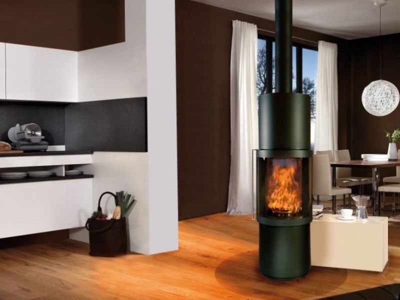 Le poêle Max Blank VULKAN est un poêle à pellets cylindrique doté d’un vitrage arrondi sur 360° pour profiter au mieux du spectacle du feu. Ce poêle double face peut ainsi être placé au centre de la pièce. Le poêle à granules VULKAN est équipé de série d’une masse accumulante de 72kg. Corps et porte de foyer en acier coloris anthracite.