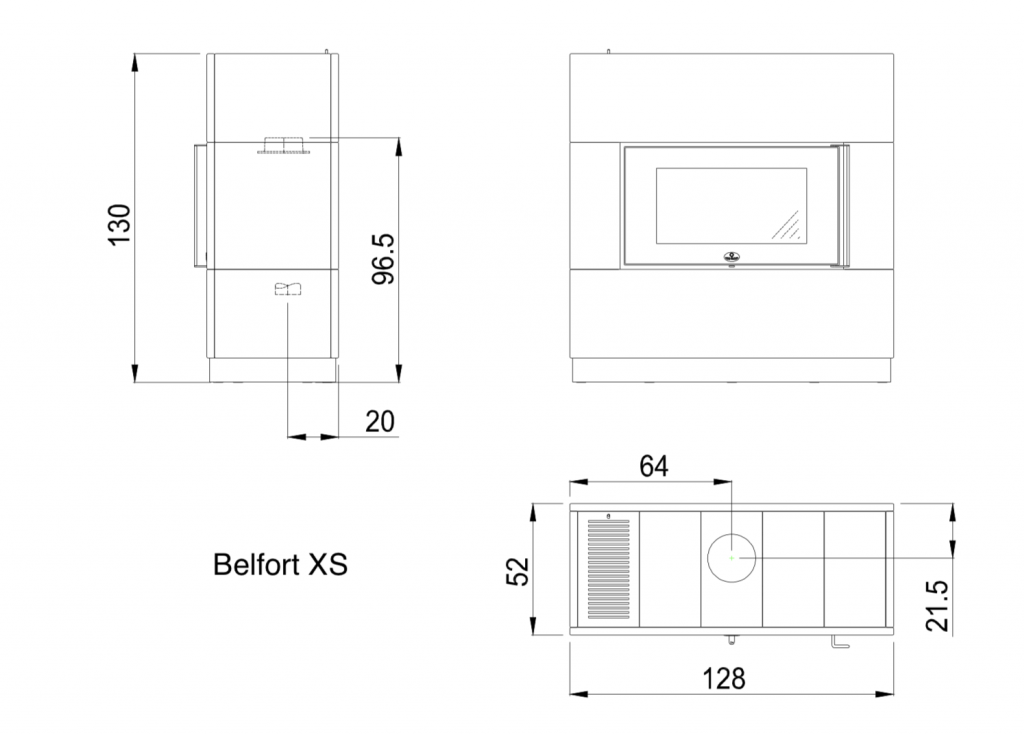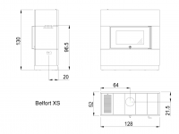 Avec ses dimensions de 130 (h) x 128 (l) x 52 (p) cm et un poids total de 563 kg, l’appareil atteint une domaine de puissance de 5 - 8 kW en (mode) combustion à bois.
