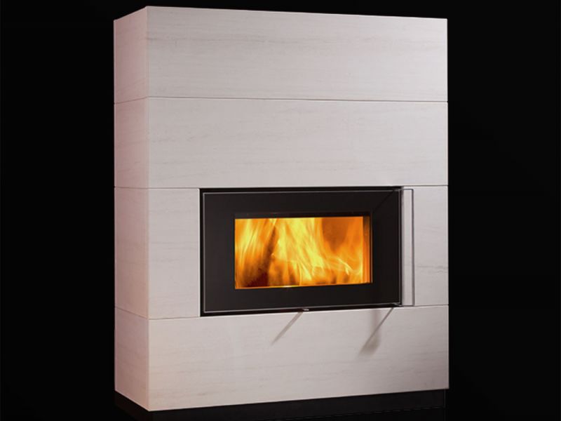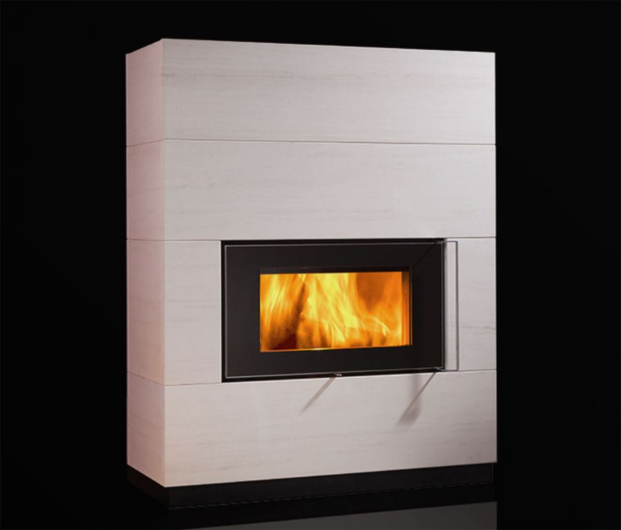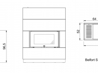 Avec ses dimensions de 165 (h) x 128 (l) x 52 (p) cm et un poids total de 684 kg, l’appareil atteint une domaine de puissance de 5 - 8 kW en (mode) combustion à bois.
