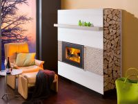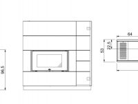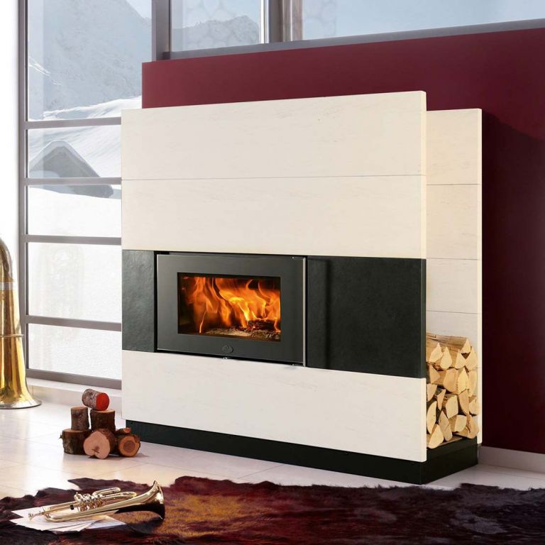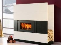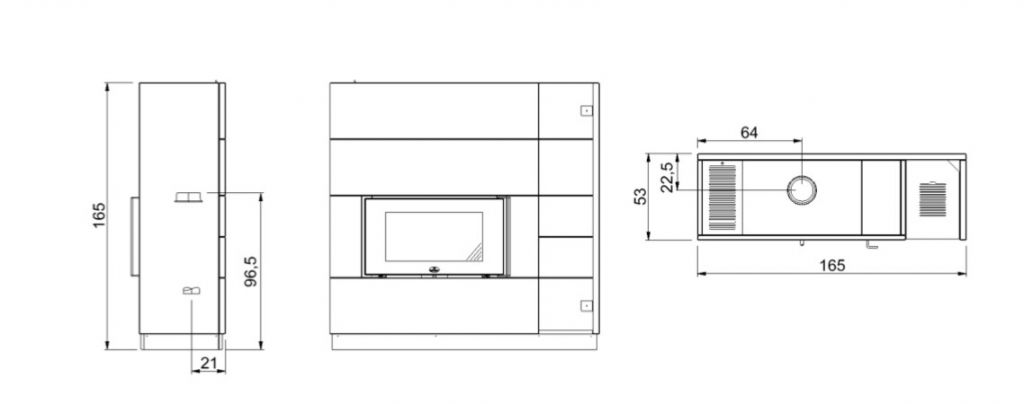 Avec ses dimensions de 165 (h) x 165 (l) x 54 (p) cm et un poids total de 953 kg, l’appareil atteint une domaine de puissance de 5 - 8 kW en (mode) combustion à bois.