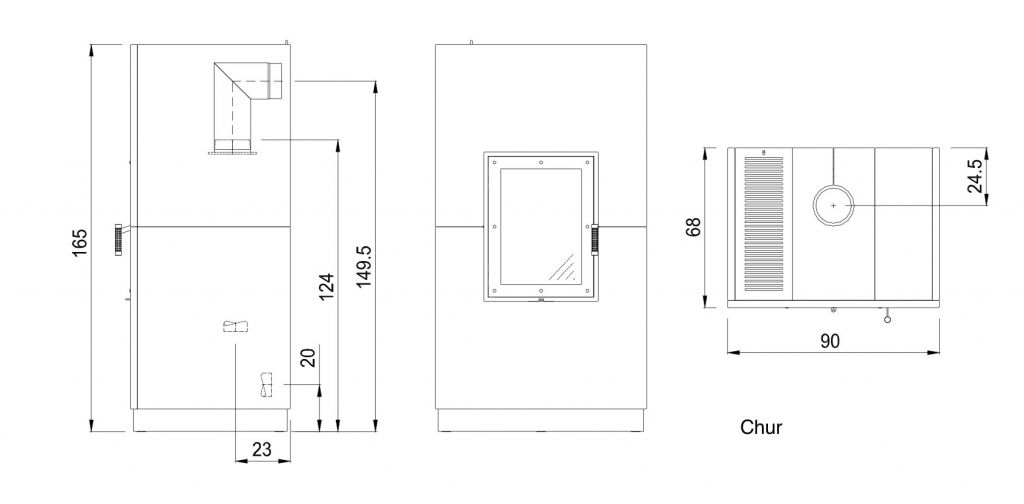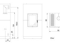 Avec ses dimensions de 165 h x 90 l x 68 p cm et un poids total de 558 kg, l’appareil atteint une domaine de puissance de 4,3 - 7,8 kW en mode combustion à bois et de 8,7 kW en mode combustion à pellets.