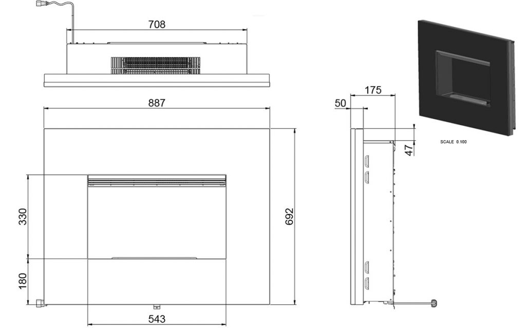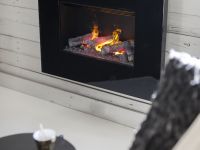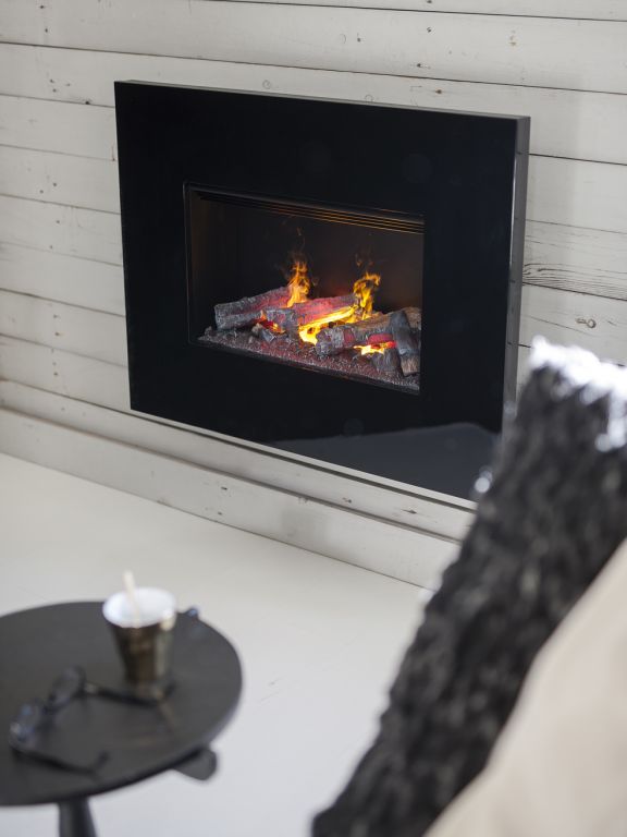 Son cadre effet béton ou noir brillant s’accommode parfaitement à tous les styles. Ce foyer ouvert permet de voir l'illusion des flammes grâce aux lampes halogènes et celle de la fumée grâce à la vapeur d'eau.