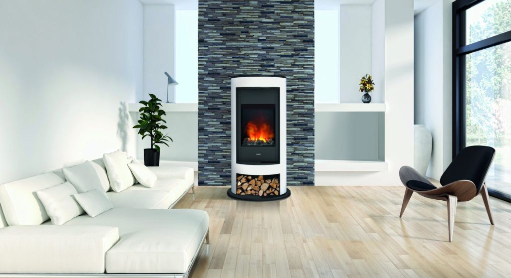 Le foyer Verdi combine l’authentique expérience du feu avec la chaleur. Le manteau, élégant, est d’une couleur blanche intemporelle. L’effet de flammes parfait complet le mobilier.