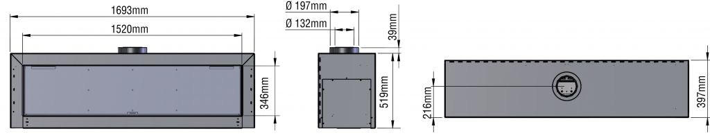 Stand Alone 150 est un poêle à gaz muni d’un support mural d’une longueur de 150 cm.